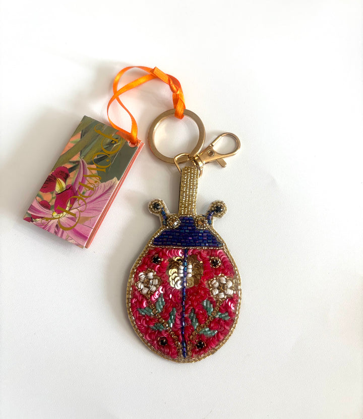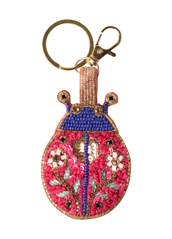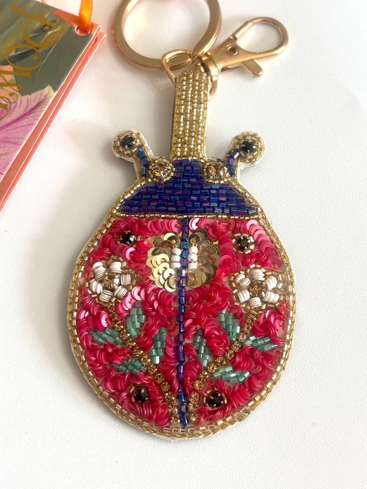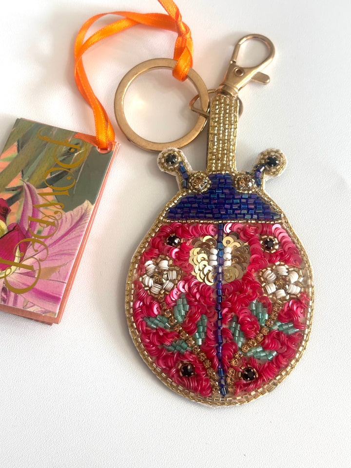 Whimsical and wonderful! Our lovely ladybird keyring features beautifully delicate beading with a delightfully vibrant colourway. This can be used as both a keyring and a bag charm which makes it perfect for novelty gifting or adding luxury to your everyday! Fabric: 100% Modal / Shell: Metal / Back: PU / Japanese Miyuki Beads.
