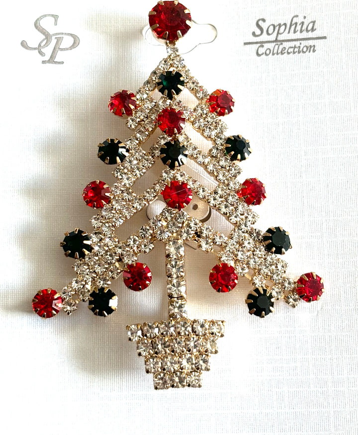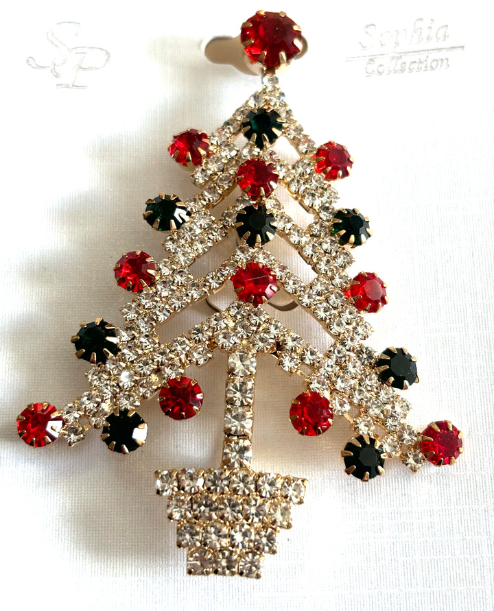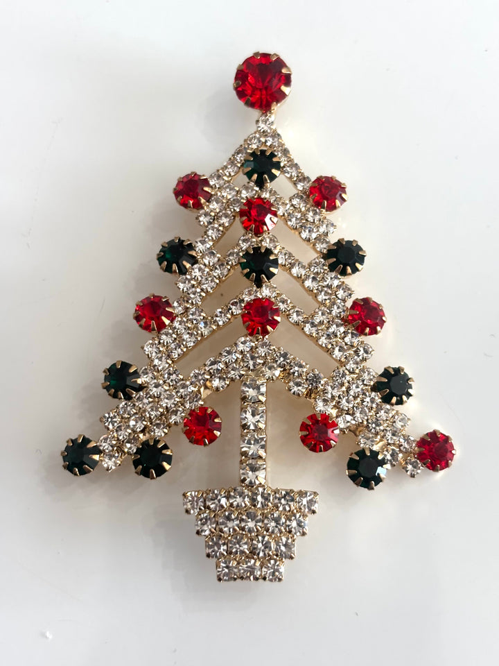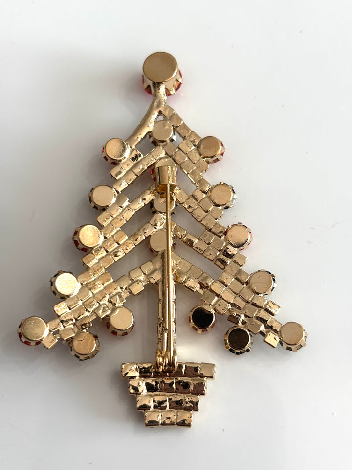 Christmas Tree Rhinestone Jeweled Brooch Pin