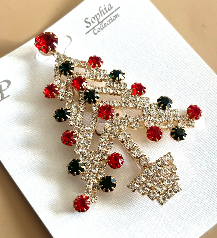 This jeweled brooch pin is the perfect accessory for the holiday season. Featuring a sparkling Christmas tree design with rhinestones, it adds a touch of festive magic to any outfit. Made with high-quality materials, it is a long-lasting piece that will make a statement at any holiday party.