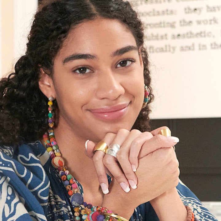 • Handcrafted by women artisans in India.