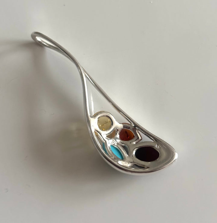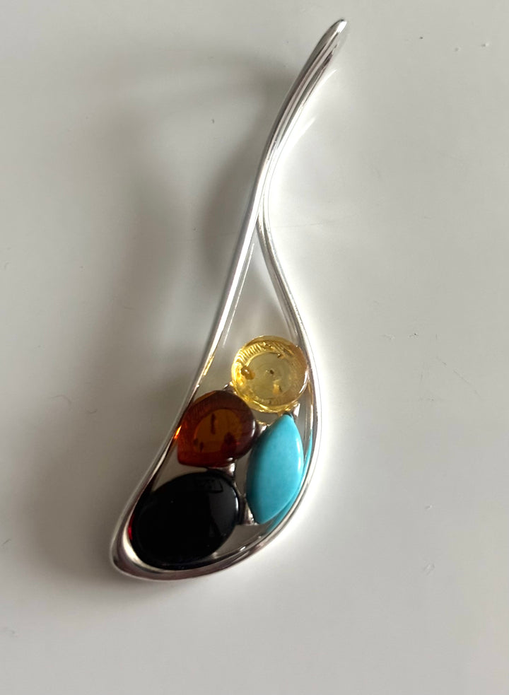 Give your jewelry collection a fresh and colorful addition with this Multi Colored Amber and Turquoise Slide Pendant. Whether you wear it on a silver chain or pair it with other accessories, it's sure to become a cherished piece that reflects your individuality and style.