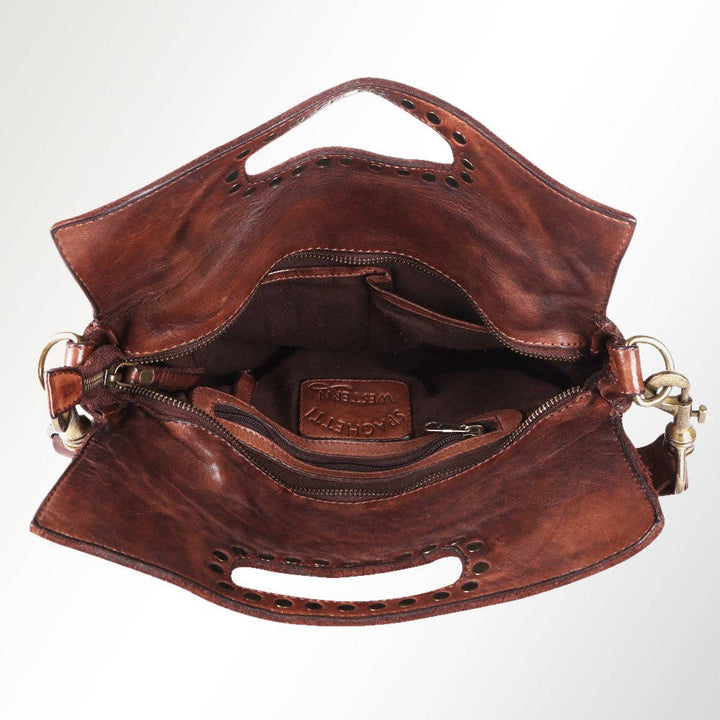 Enhanced with decorative rivets, adding a touch of rugged elegance.