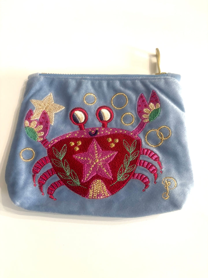 Velvet Mini Pouch - Seafaring Crab - Cornflower